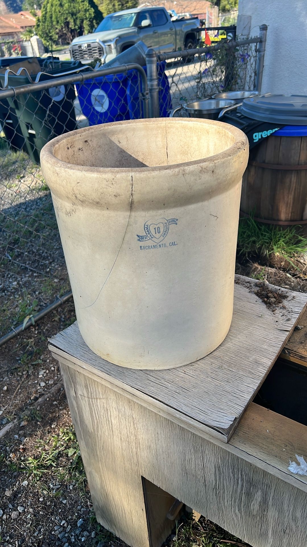 The 10 gallon one has two cracks, the smaller blue dot one is in good condition