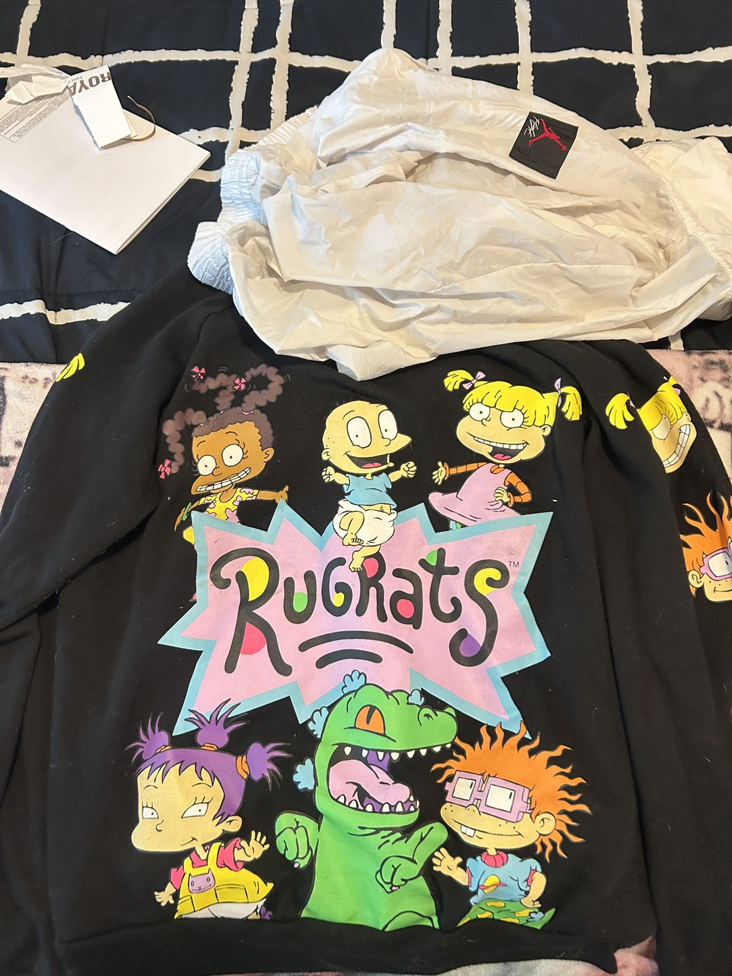 Colorful Rugrats graphic sweatshirt featuring vibrant cartoon characters. Perfect for fans of the classic show.