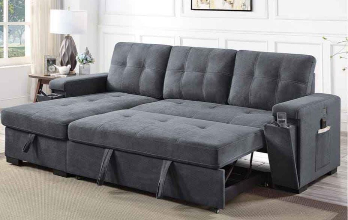 SLEEPER SECTIONAL GRAY FABRIC 90x55