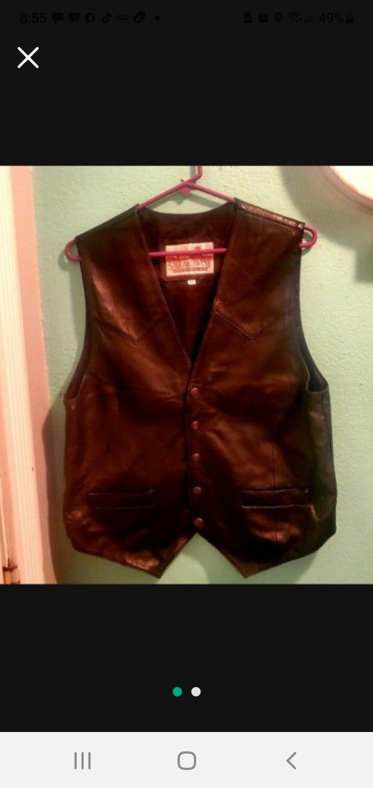 Black LEATHER VEST..SIZE MED MENS ADULT..SNAP FRONT..GREAT CONDITION!