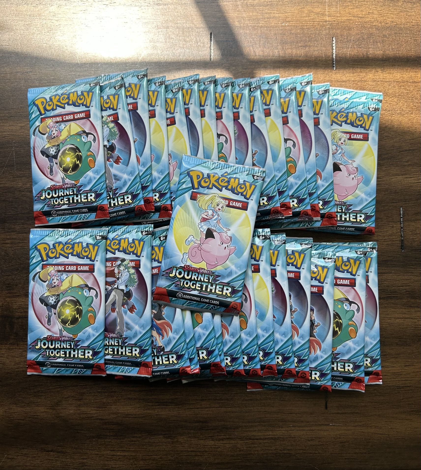 Pokémon Journey Together $5 each (150 available) Pick up: 4220 Gilman Rd El Monte Pokemon Fusion strike evolving skies brilliant stars lost origin Crown zenith 151 booster box sleeved packs ETB elite trainer box Paldea evolved twilight marsquerade surging sparks stellar crown prismatic evolutions Paldean fates scarlet and violet pokeball mini tin psa sword and shield mew destined rivals black bolt & White flare Mega evolutions phantasmal flames celebrations charizard pikachu