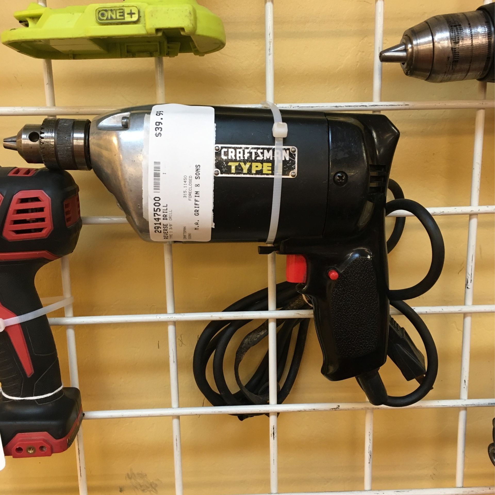 Craftsman type I corded reverse drill 3/8” drill (315.11450) Asking $39.99 ProductID: 29147500-JG-I M.A Griffin & Sons 1234 19th st 93301 Mon-Sat 9:00am -6:00pm