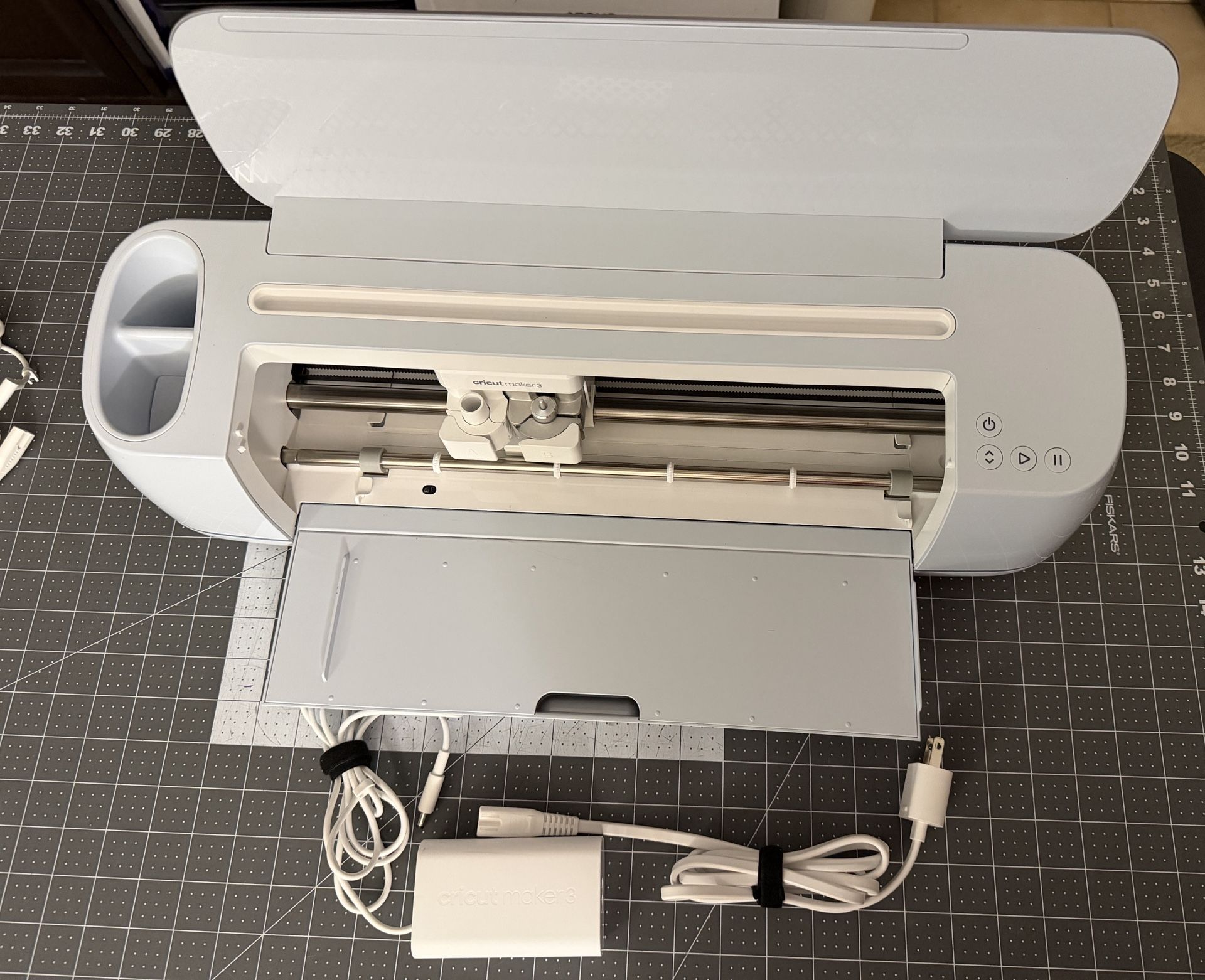 This machine has been used lightly and is in excellent condition. Works with 300+ material types Writes, draws, foils, engraves, embosses and more Compatible with a home inkjet printer to print then cut full-color designs Includes fine point blade, weeding kit, and one each green and blue mat