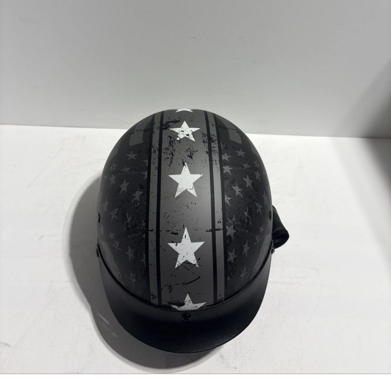 The ILM Motorcycle Half Helmet with Built-In Sun Visor is a high-quality, stylish helmet designed for motorcycle enthusiasts. Featuring a quick release closure for easy on and off, this helmet is DOT approved for safety. The black helmet with a US flag graphic design is made of durable ABS shell construction. With a size XXL, this helmet offers both style and protection for unisex adults looking for a reliable riding gear. Only worn 6 times.