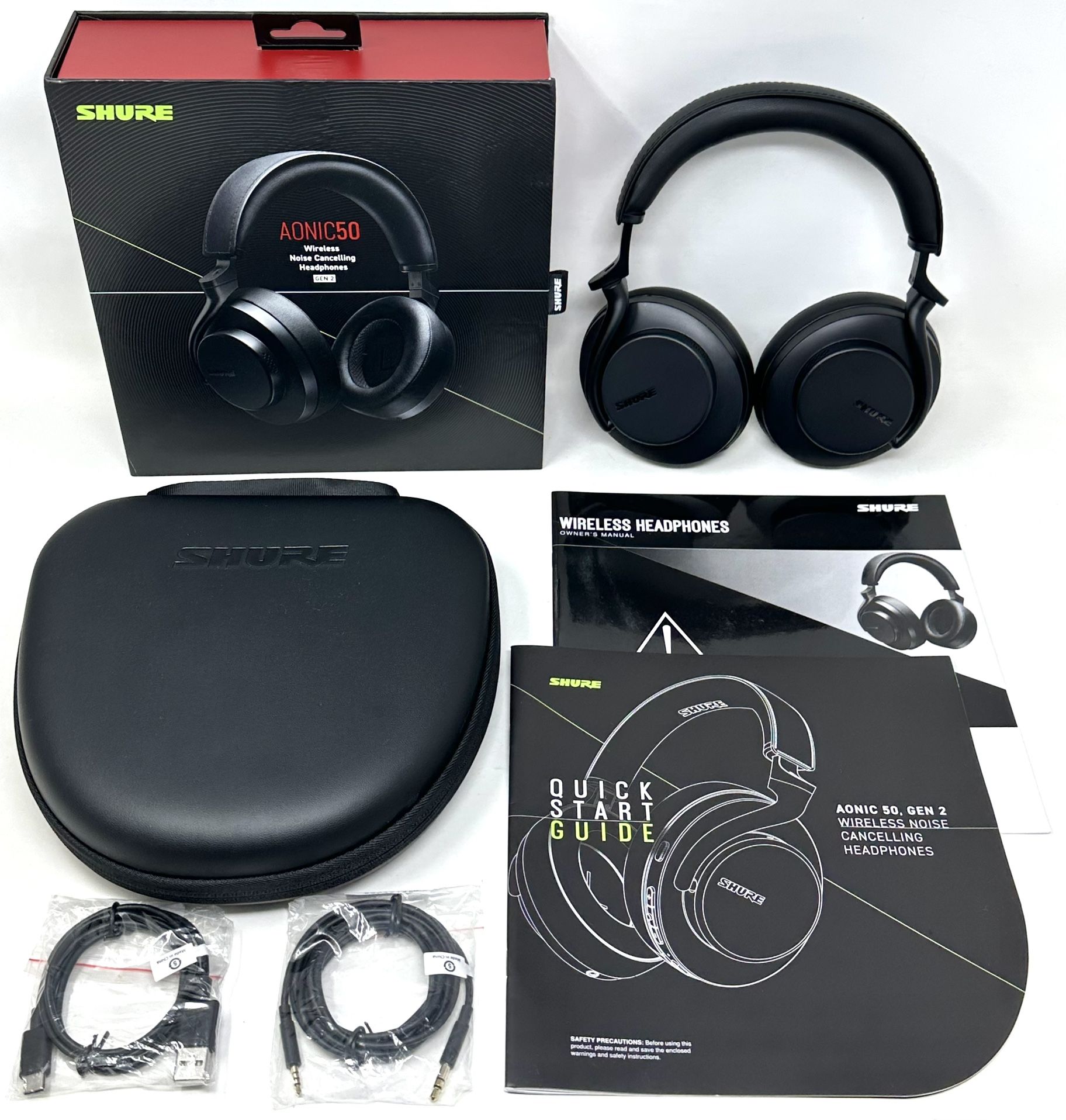 Includes Shure AONIC 50 Gen 2 Wireless Over-Ear ANC Headphones Protective Carrying Case 3.5mm Audio Cable USB-C Charging Cable Manual Original Box - Details 50mm Dynamic Drivers New DSP Mode Bluetooth 5.0 Multiple Codecs Supported Active Noise Cancellation Environmental Mode for External Sound Up to 40 Hours of Playback Easy-to-Use Controls 3.5mm Audio Input 15-Minute Fast Charge for 5 Hours of Use - Good cosmetic and working condition - Some minor wear may have been difficult to capture in pictures - All items on our site are pre-owned, regardless of condition (new, used, or for parts). - High-value items may require signature confirmation upon delivery. - Wear refers to normal damage or aging from regular use. - E2 - I44-5320-HJ
