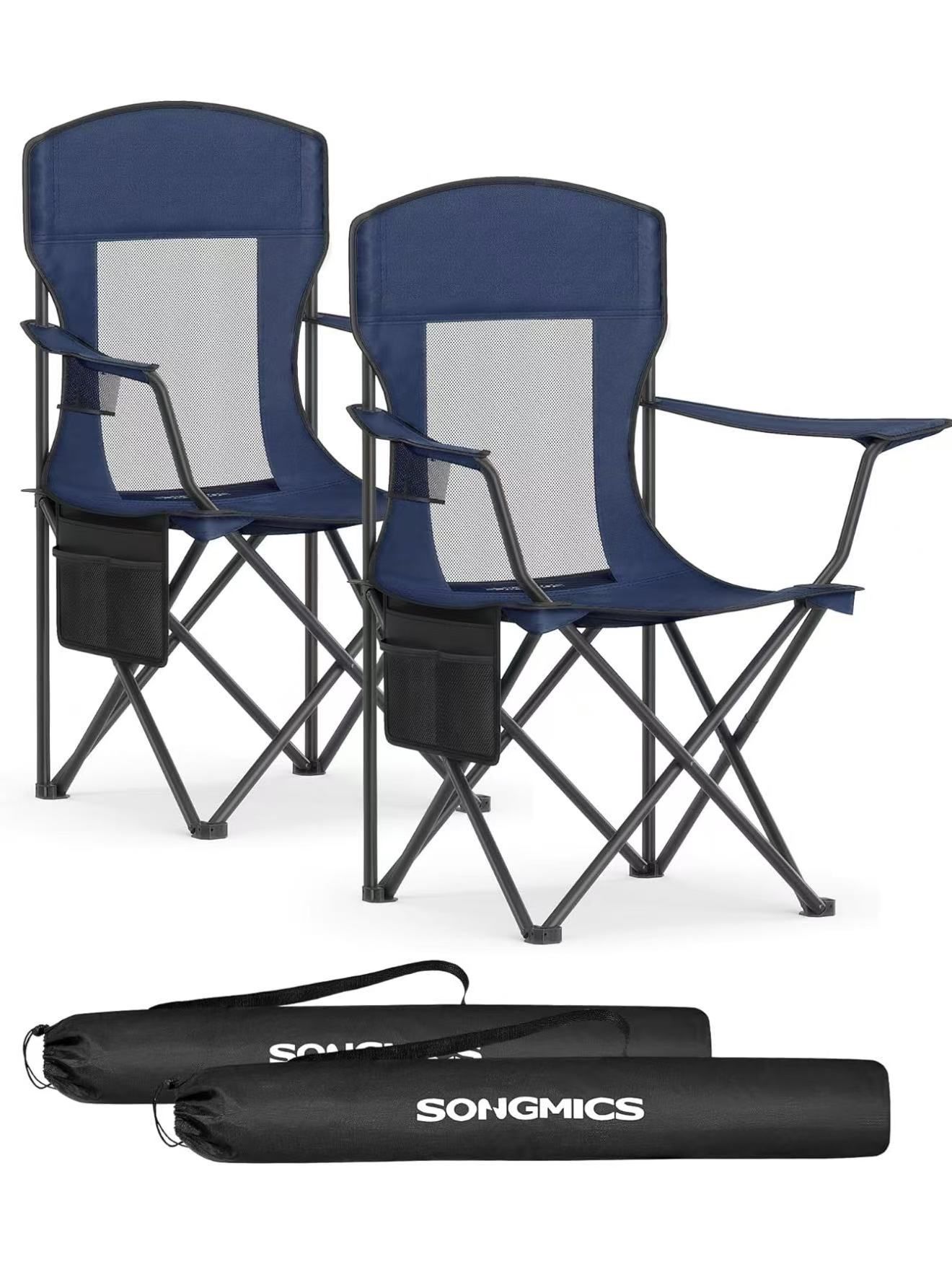 Breathable Camping Chairs, Foldable Outdoor Chairs Set of 2, High Back, Adjustable Armrests, Drink Holder, Weight Capacity 330 lb, for Sports Garden Backyard, Harbor Blue UGCB028Q01