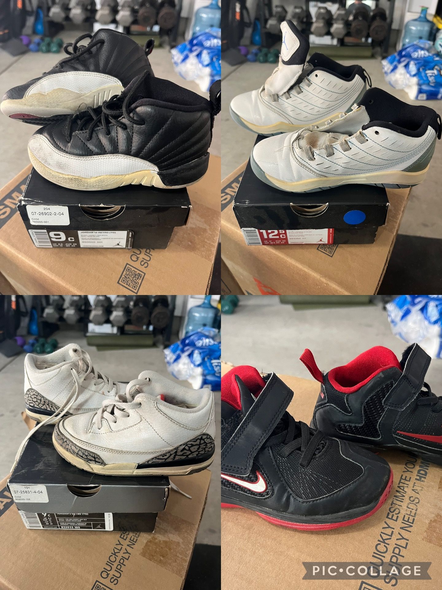 Sizes between 9.5-12c. All jordans come with the original box. Price is for Everything in the pictures