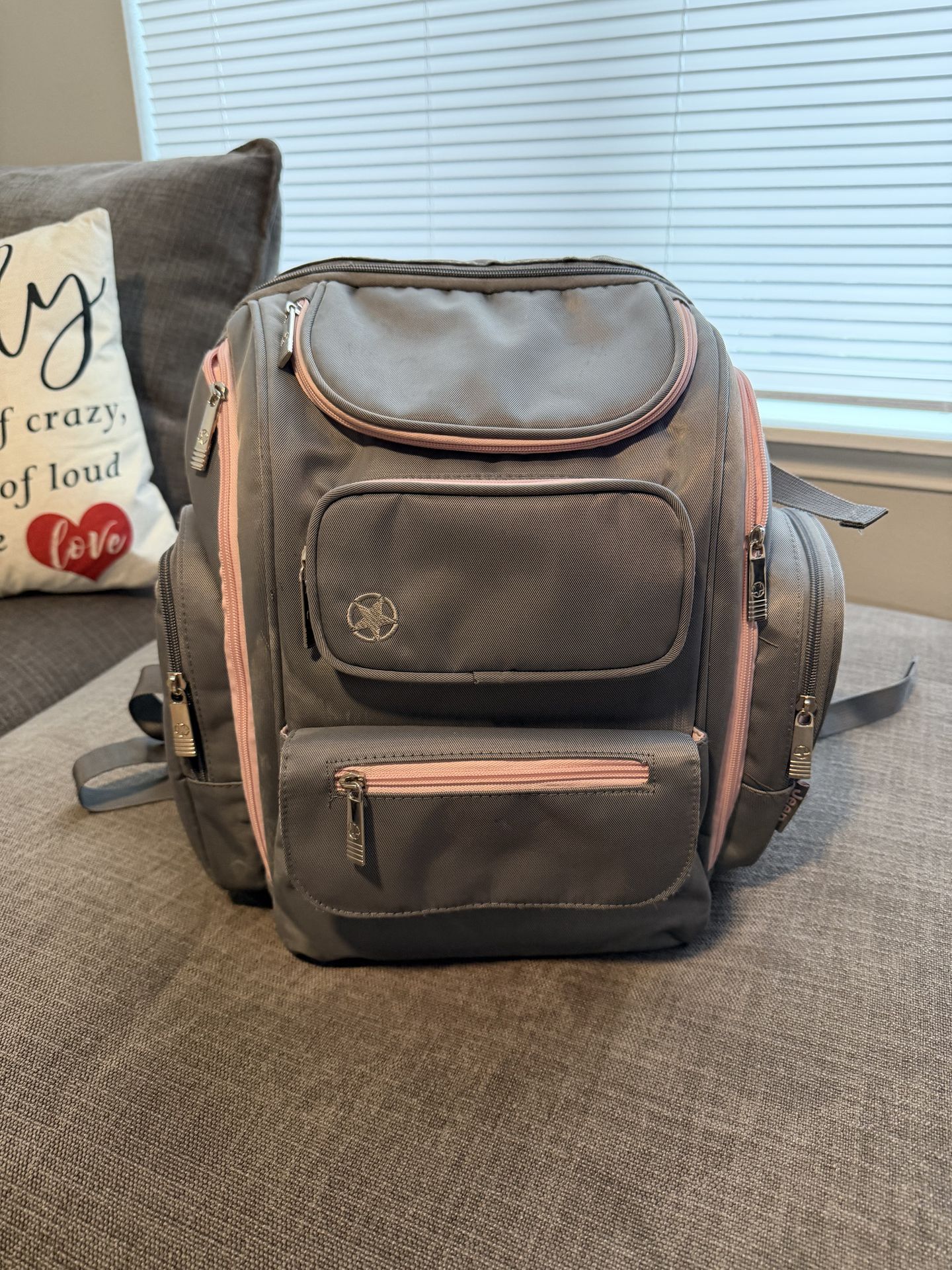 Jeep gray/ pink baby bag very good condition easy to clean . 30 or OBO