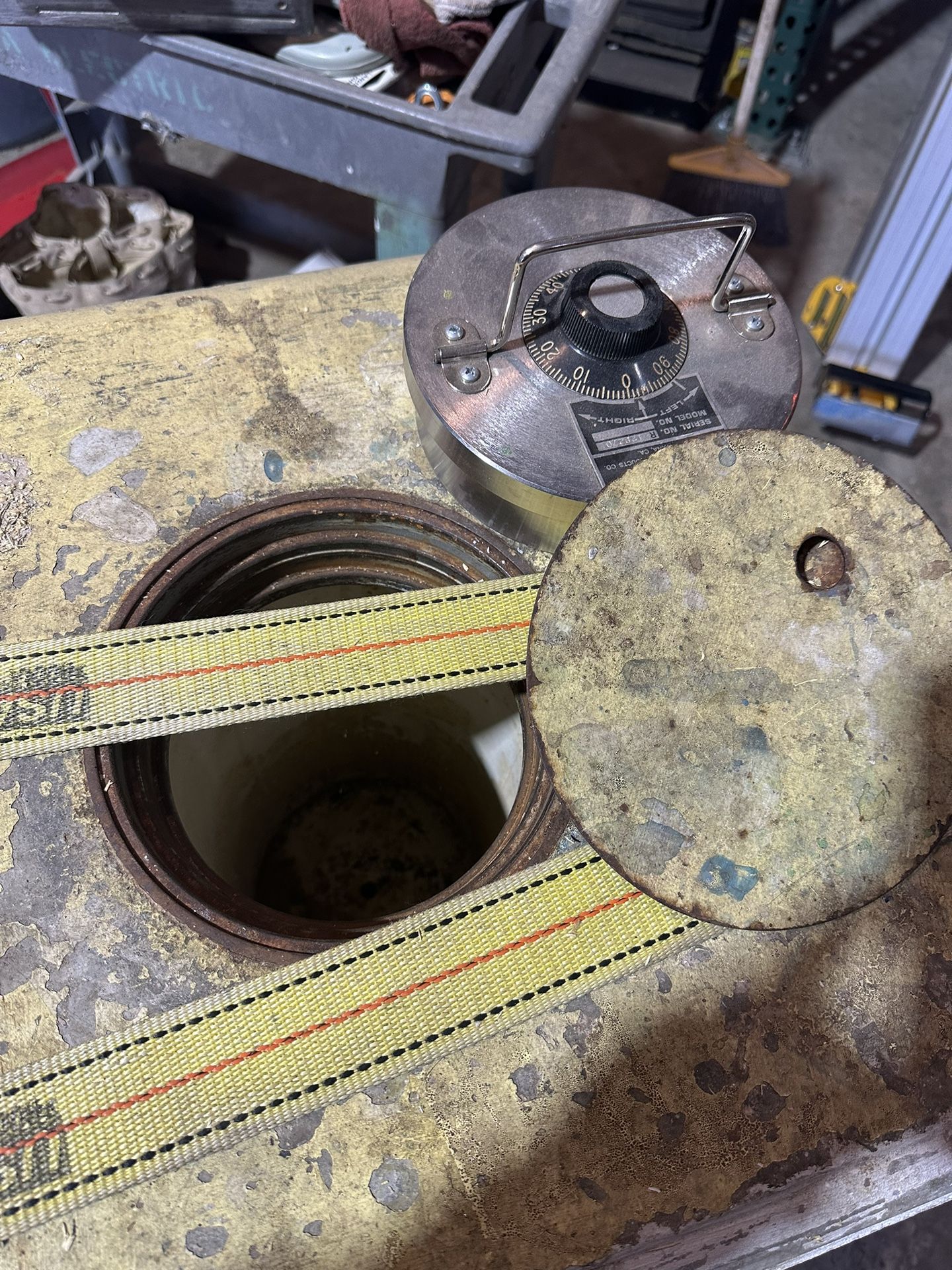 Super heavy concrete safe out of a highscool Approximate size 2 feet wide by 3 feet tall Inside diameter, approximately 18 inches tall by 8 inches