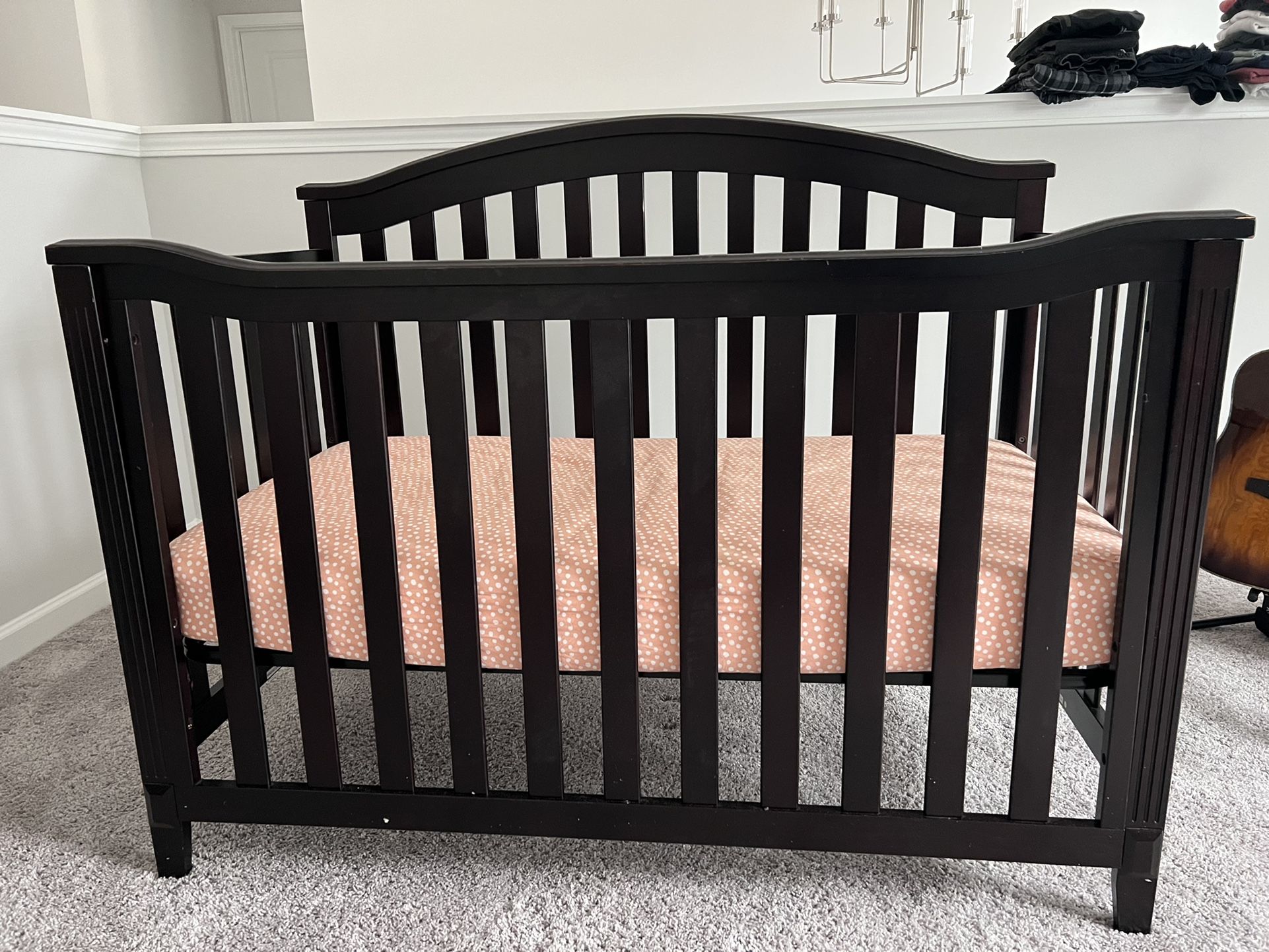Rarely used crib from Babys R US brown color, will include a FREE crib mattress and a crib bed sheet