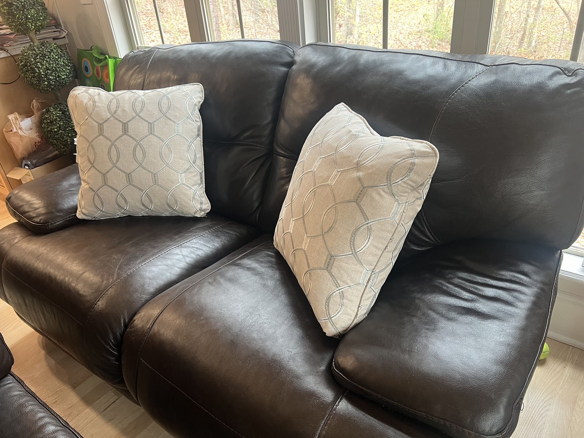 We have two couches for sale. One is a love seat and the other one is 4 person seat. Good condition, the long one reclines manually and the love seat reclines with a remote