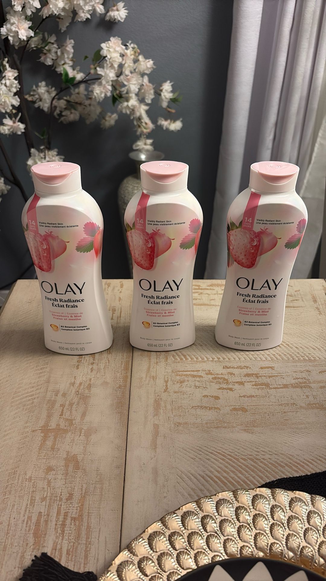 Strawberry and mint scent. 10 dollars for all 3 regular 7 each at Walmart