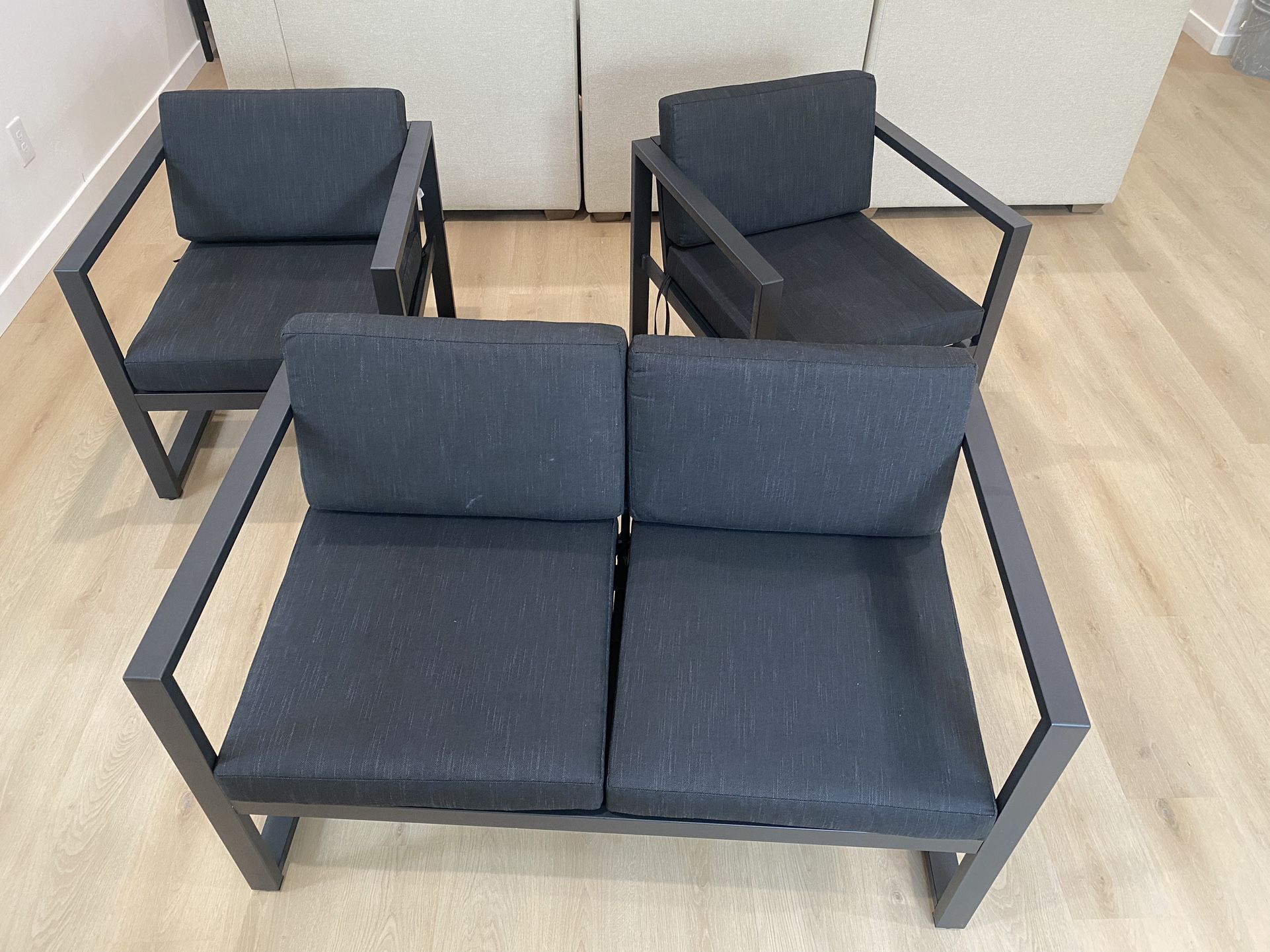 I just purchased this outdoor set and assembled it. I am looking to sale because it does not go well with my outdoor decorations. Retails for $819.99 but I am only asking for $375 or best offer.