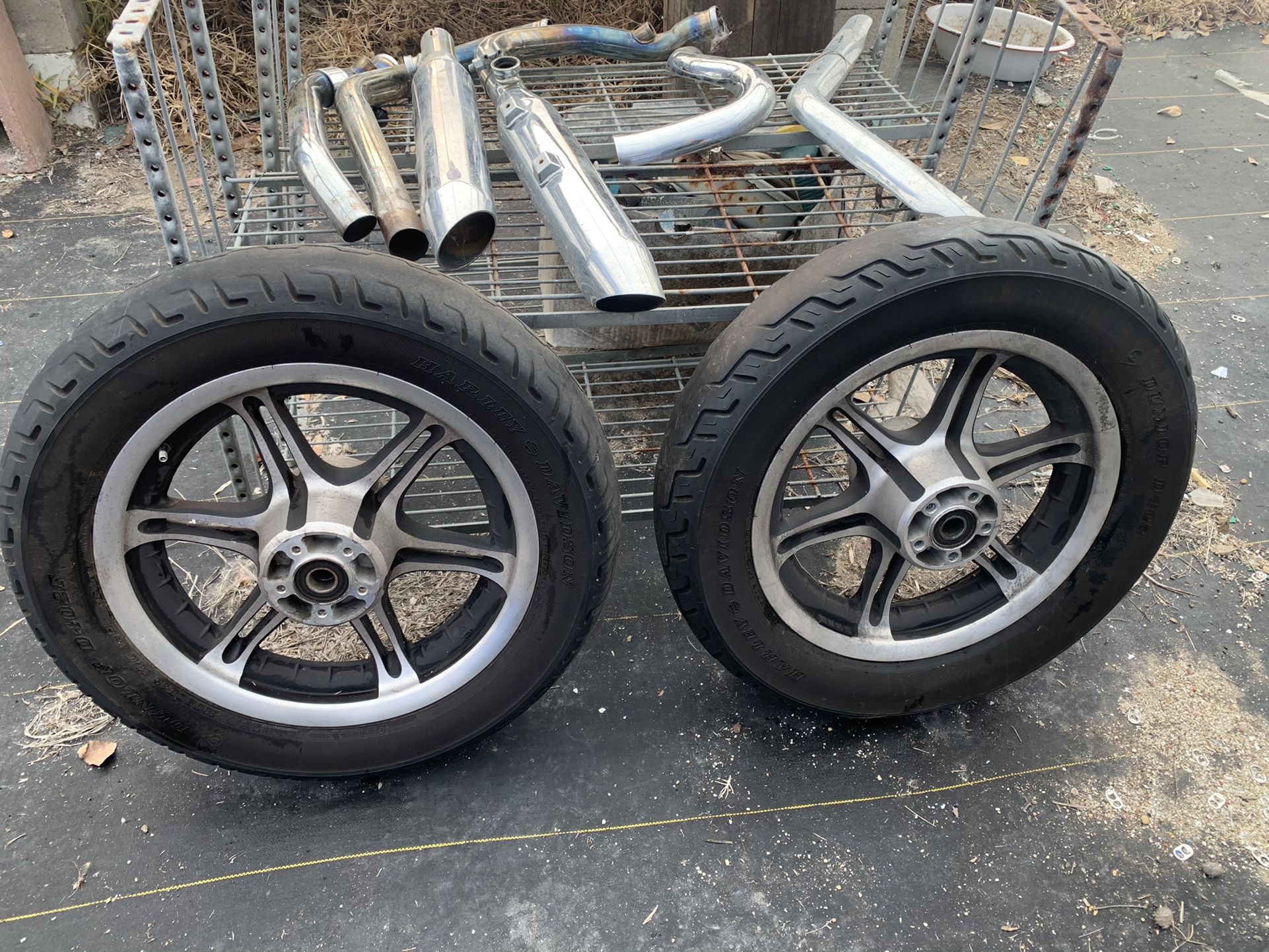 Selling my mags off a 2007 streetglide! Was going to powder coat them and do the swap but I sold the bike so the wheels are up for sale! Please no lowballers. Tires are junk but wheels are solid! $399 cash Road glide, road king, softail, deluxe, dyna, FXR, FXDX, FXDXT, Streetglide Harley Bagger