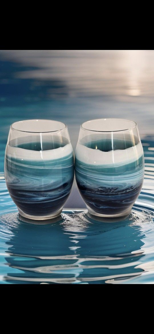 These beautiful handmade ocean stemless wine glasses great for any occasion these wine glasses will brighten up any space great for a gift go to just have in your collection I offer shipping
