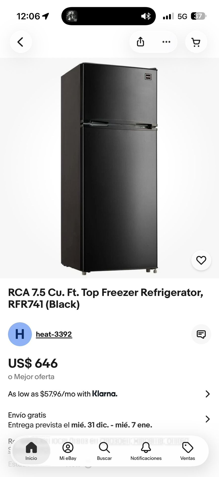 RCA 7.5 Cu. Ft. Top Freezer Refrigerator, RFR741 (Black) Used Good $90