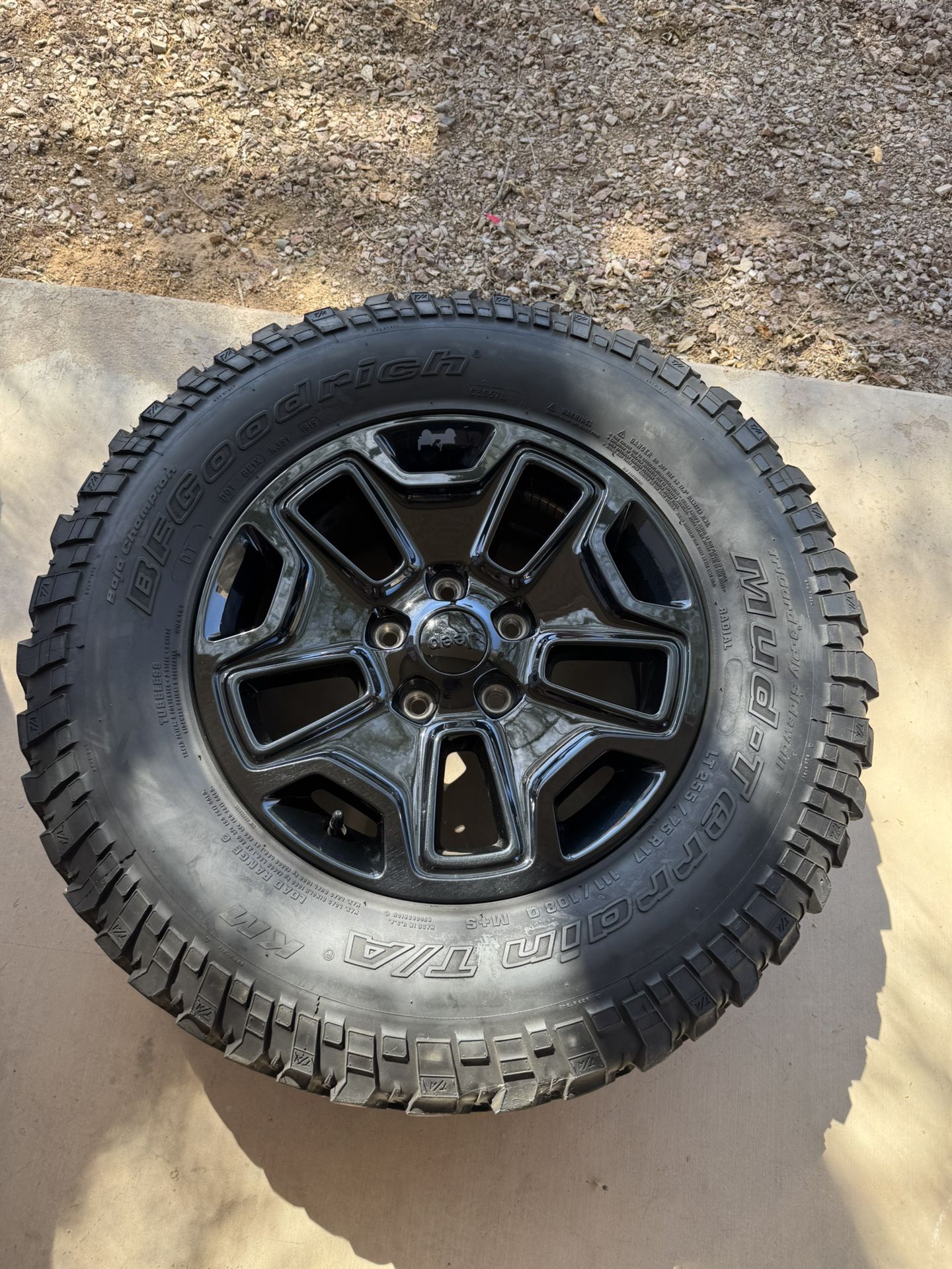4 rims + spare and tire off a 2015 Jeep Wrangler Willys. All rims are in really good shape. Been in storage