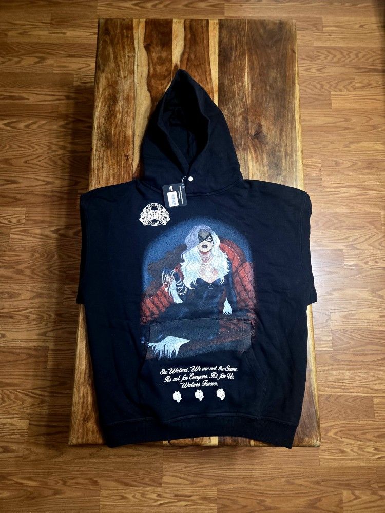 Darc Sport/Marvel Black Cat Graphic Snap Hoodie. This hoodie features a striking image of the Iconic Cat-Burglar, Felicia Hardy aka Black Cat. Soft, stylish and incredibly comfortable. #926 of 1000 ever made. Size Large and is slightly over-sized. Brand New with Tags!