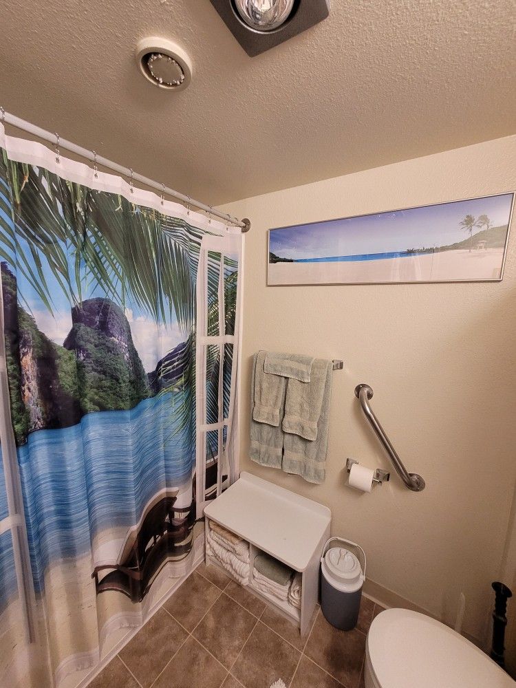 $20 Shower curtain $40 Bamboo towels: 2 bath towels, 2 hand towels, 1 washcloth $30 metal framed beach print ___ $75 for all