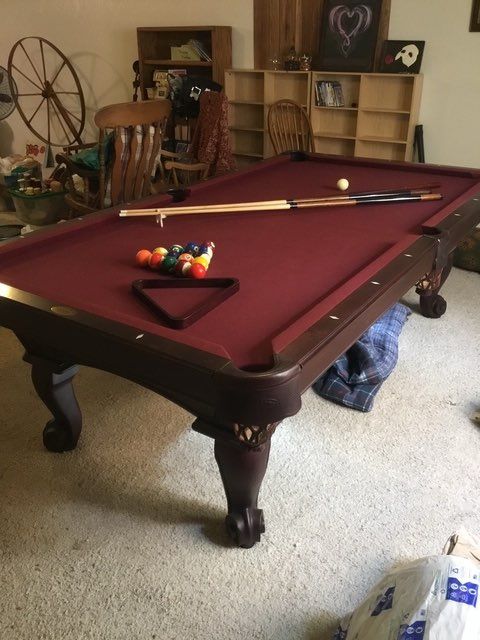 This is a beautiful 8’ Olhausen Santa Ana pool table in great condition. It will come with all needed accessories and buyer can choose any color felt free! Delivery and install available. Check us out at rebuiltbilliardsaz . com!