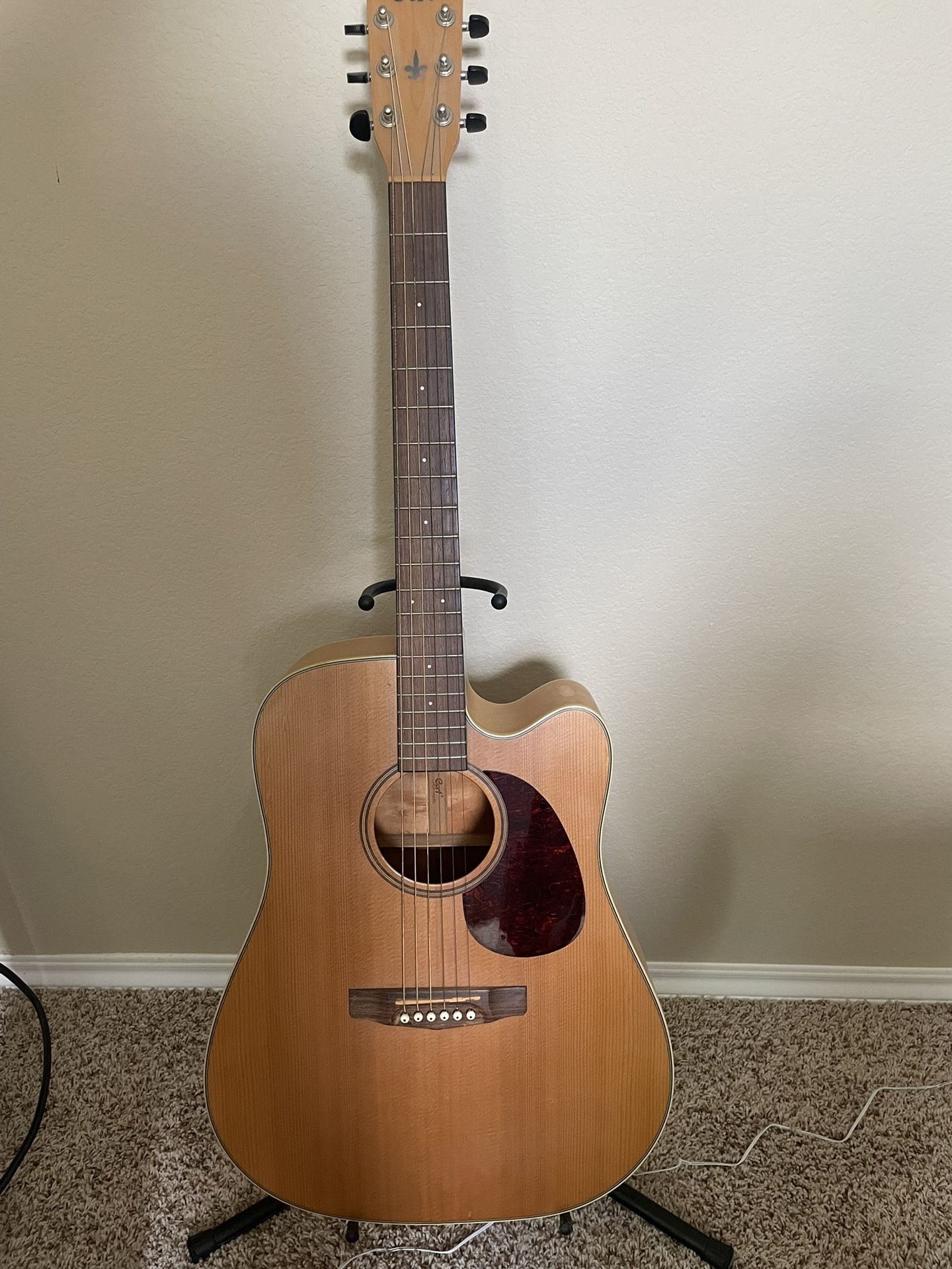 Cort Electric/acoustic guitar with stand and tuner . Need to sell asap moving sell . $200 or make me a offer I might take it. Cedar park area