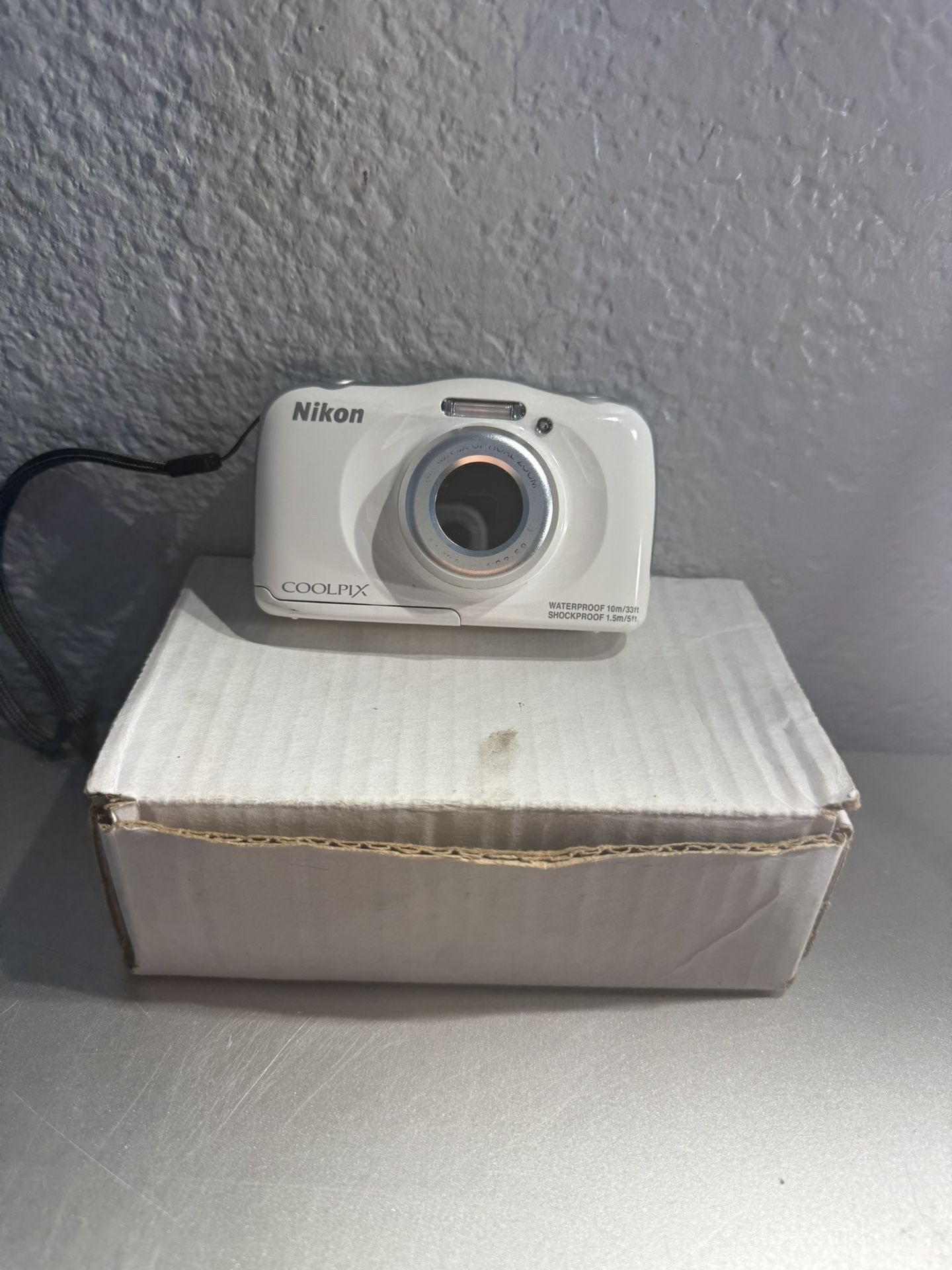 Nikon Coolpix S33 Waterproof Camera 13.2 MP White 4GB SD Card Tested Working