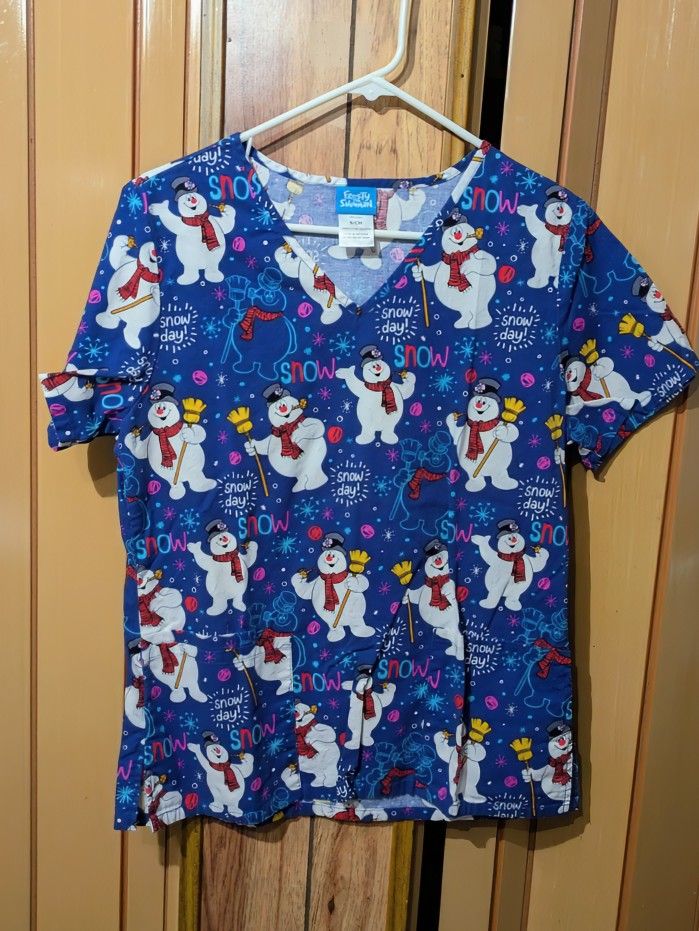 Frosty the Snowman Scrubs Top. Size; S/CH. Pick up in Santa Ana near 1st Street and Fairview.