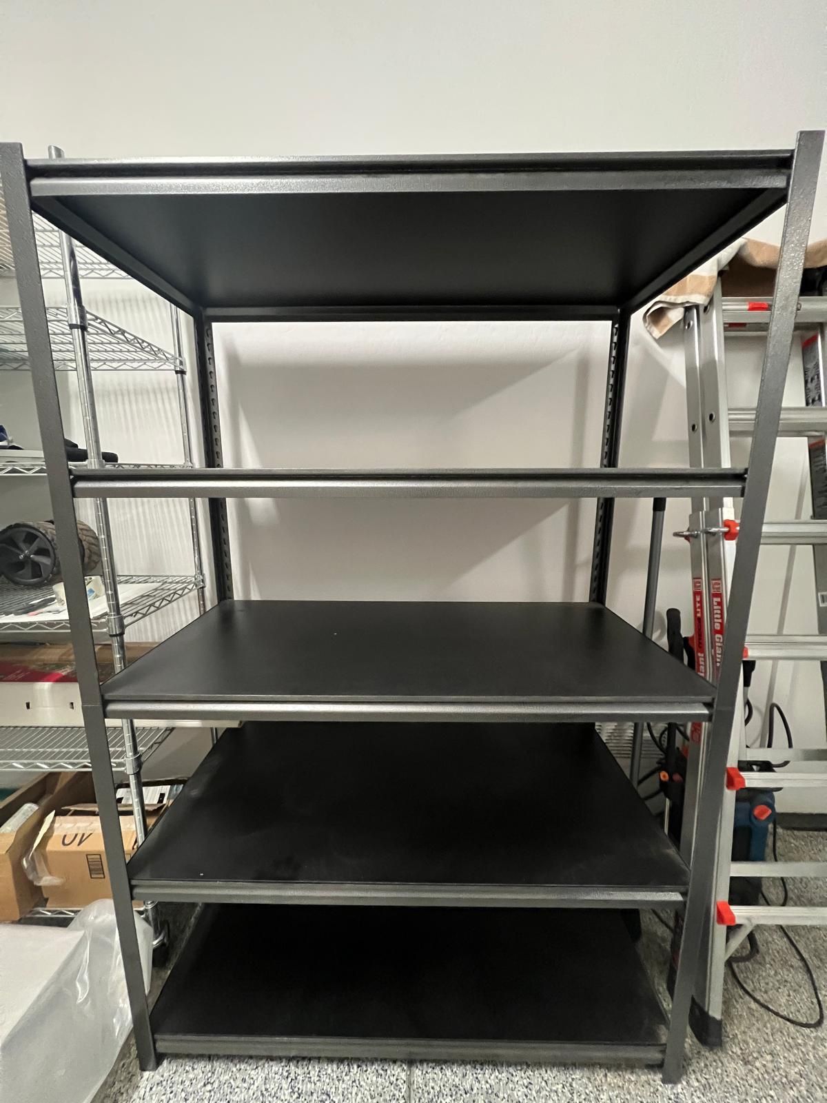 Selling a heavy-duty adjustable metal garage shelving unit. Very sturdy and easy to assemble. Specs: • 46” Wide × 72” High × 20” Deep • 5-tier shelves ( Installation layer board) • Holds up to 3000 lbs total • Black finish • Great for garage, warehouse, basement or utility storage Only selling because I don’t need it anymore. I dismantle for easy pick up