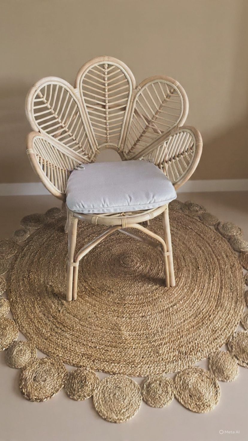 Rattan chair and jute rug R.E.N.T O.N.L.Y