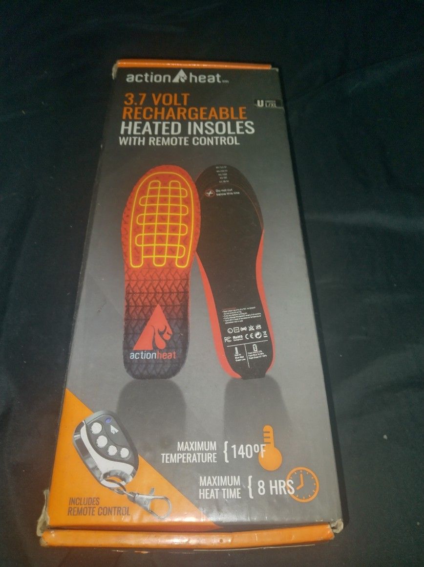 Action heat rechargeable heated insoles w/remote. Item is unused new in box. Retail $130. Selling for $75