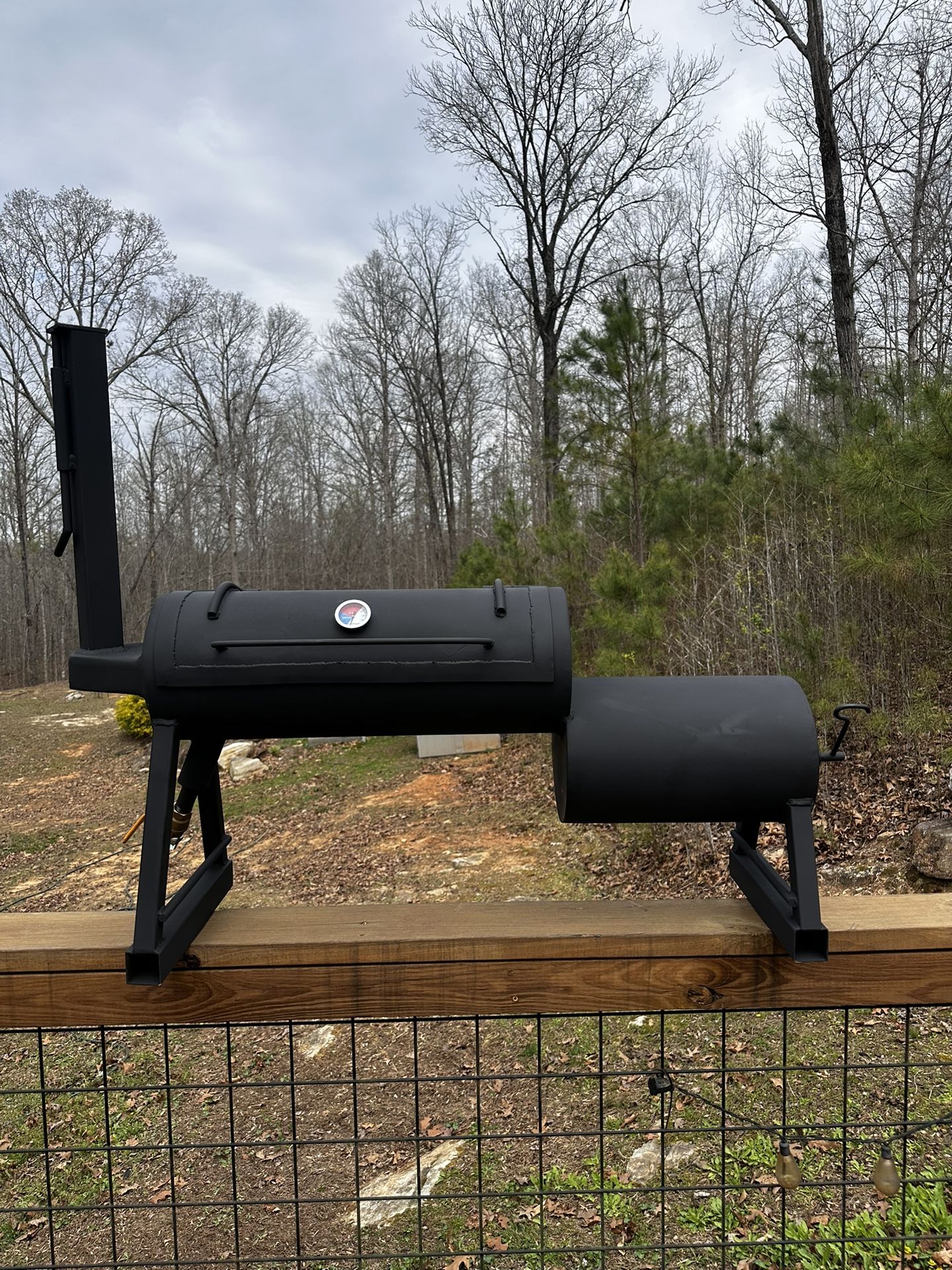 Custom made Mini offset smoker. 4 feet total length. Door with a is 22 inches. All 1/4 thick metal. Painted with rustoleum 2000 degree paint. Weighs about 150 pounds. Asking $350