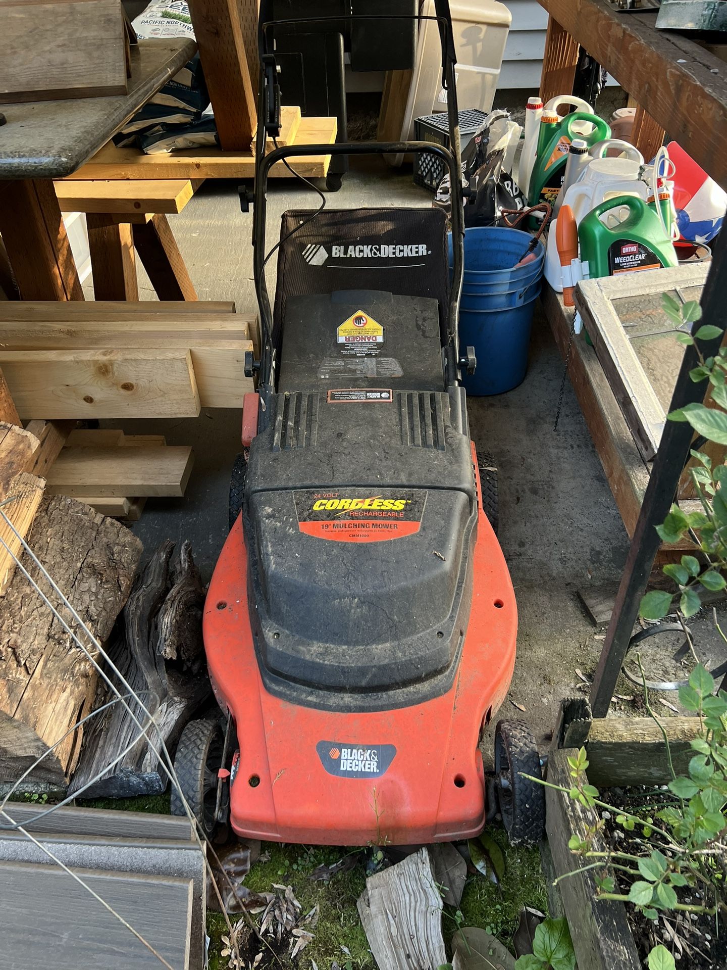 Black and Decker Mower Cordless w/ charging cable Battery might need replaced.