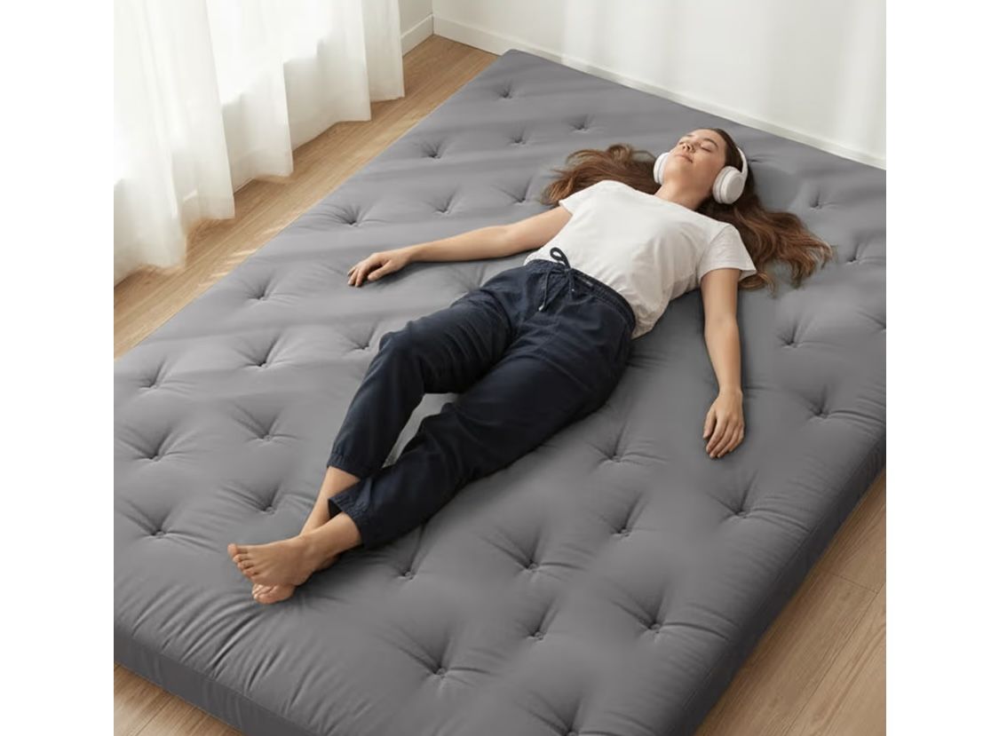 ZonLi Japanese Floor Futon Mattress Queen Size 80"x 60", 100% Cotton Cover 2.5'' Thicken Tatami Mattress, Foldable Sleeping Pad, Portable Dormitory Tatami Mat(Grey) $55