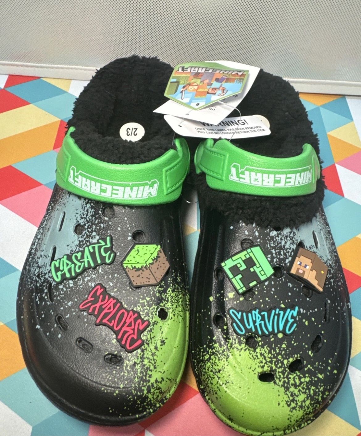 Minecraft Crocs Fleece Lining & Charms, Kids Size U.S 2/3