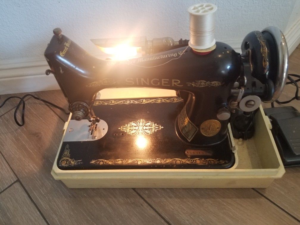 This vintage Singer Sewing Machine-Great Britain serial #(contact info removed)A, catalog B.T.7 is an AWESOME addition to any collection. It's in working conditions with unique features and a classic design among sewing enthusiasts. It's being sold as-is which means that it's functionality cannot be guaranteed. However, it may still be a valuable piece for those who enjoy restoring or displaying vintage machinery. Whether you plan on using it to sew or simply as a decorative item, this Singer sewing machine is sure to impress many enthusiasts.