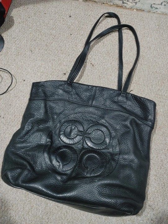 COACH JULIA Pebble Leather Black OP ART Perry Tote Bag Creed 14967