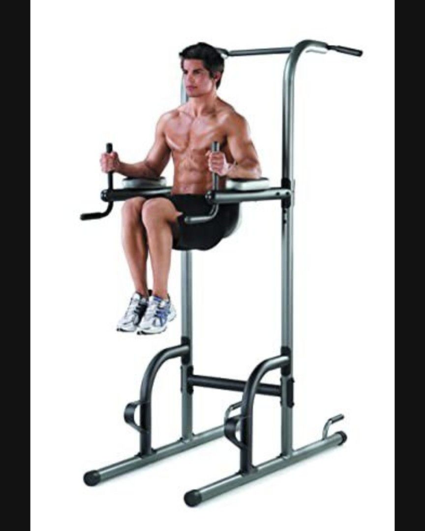 The Weider Power Tower provides a combination of comfort and practical utility. Supplement or replace your expensive annual gym membership with this innovative piece of fitness equipment that can be used to train your entire body. Get more out of your push-up workout with the Power Tower’s incorporated push-up station with molded hand grips. Engage and train your lats, biceps, and forearms at the pull-up station. Dimensions: 57"L x 41"W x 84"H Item Weight: 39 Kilograms Cash only, no zelle or venmo. Must pick up.