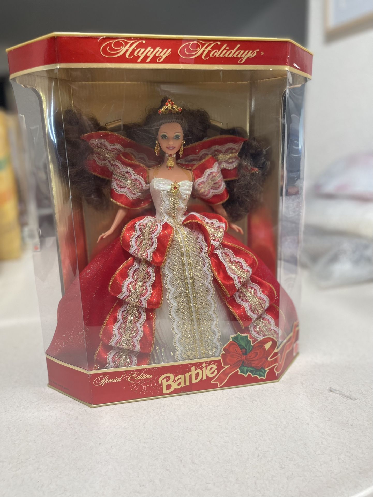 *Scroll Down for English* 1997 Happy Holidays Barbie 10th Aniversario edicion especial. La caja cerrada y puede tener desgaste. Se aceptan ofertas. San Diego/ El Cajon. 1997 Happy Holidays Barbie 10th Anniversary Special Edition. Unopened box. *Box may have wear/damage from handling.*. Offers accepted. San Diego/ El Cajon.