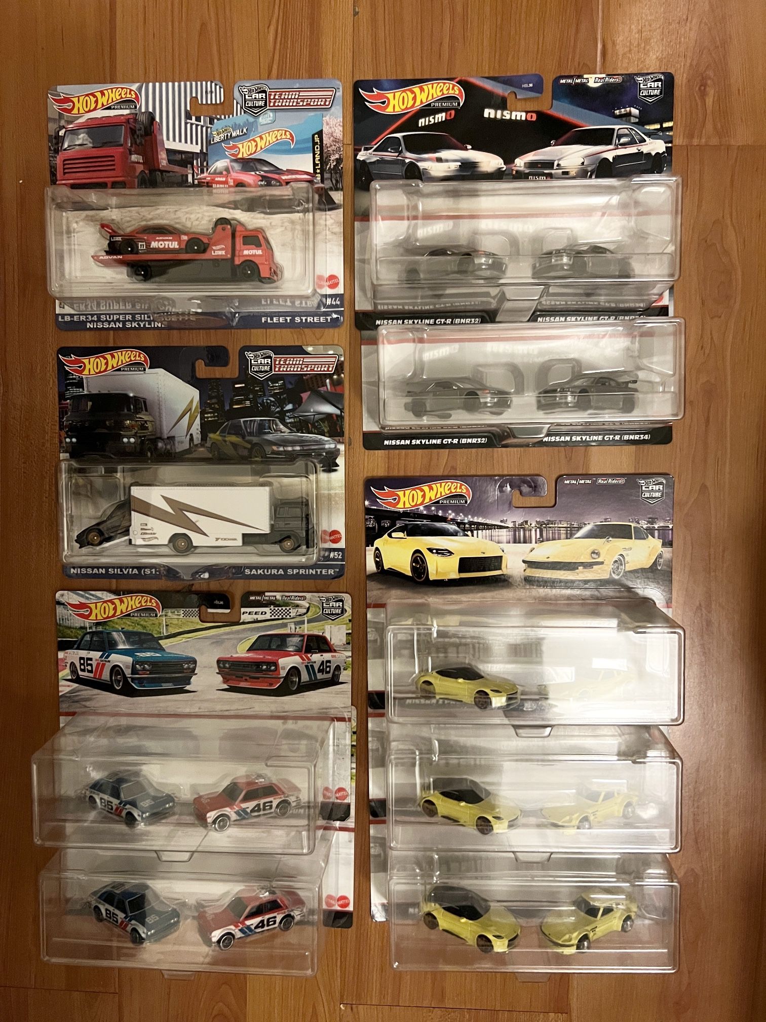 Local pick up East LA, address in last picture Hot Wheels 2-Packs: Nissan Yellow Fairlady Z (X2) $18 each Datsun 510 (X2) $23 each Skyline R32 & R34 (X2) Both SOLD Hot Wheels Team Transport: Nissan Silva S13 SOLD Nissan Skyline R34 SOLD I work Monday - Friday , so either free pass 5:00pm on weekdays, or weekends with advance notice. Let me know if you have any questions, thank you.