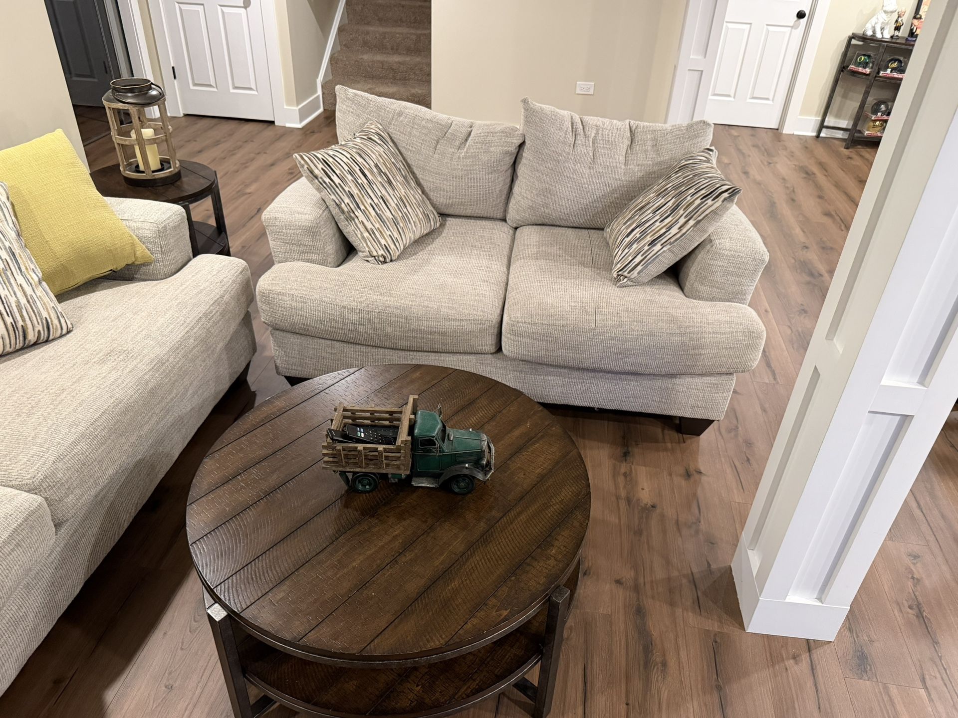 Nice living room set – ready to go! ✔ Sofa + loveseat ✔ Matching round wood coffee table ✔ Neutral color (fits any space) ✔ Comfortable and sturdy Condition: Very good – clean, normal wear Perfect for living room, basement, or starter setup. 👉 Pickup only (bring help) 👉 Priced to sell – message me!
