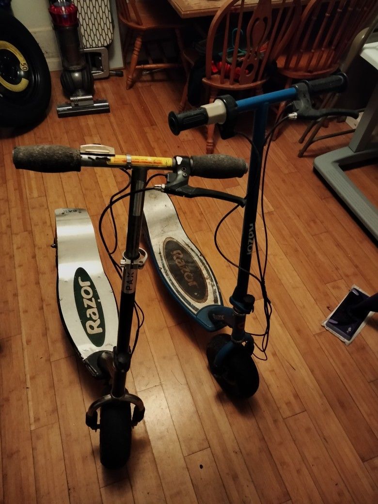 🤔Two electric Razor scooters E300 for only $325 The blue E300 needs new batteries. The black E300 has new batteries & works👍