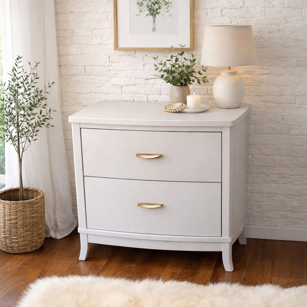 Refinished Cream Curved Nightstand w/ Gold Pulls – Soft Modern Look