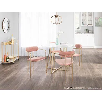 Soft pink and gold Glam Velvet dining chairs. 6 available. Purchased at BedBathandBeyond a year ago. Originally paid $840.