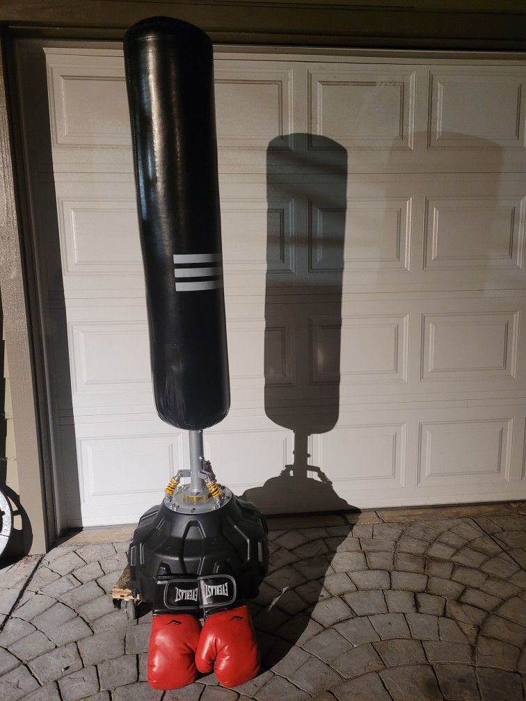 Standing Punching π Bag In. Good condition no rips no tears no leaks comes with a pair of gloves. Base is filled with sand ready to start training. I can also empty out the sand if you want it empty base . Delivery available if you pay for my gas β½οΈ
