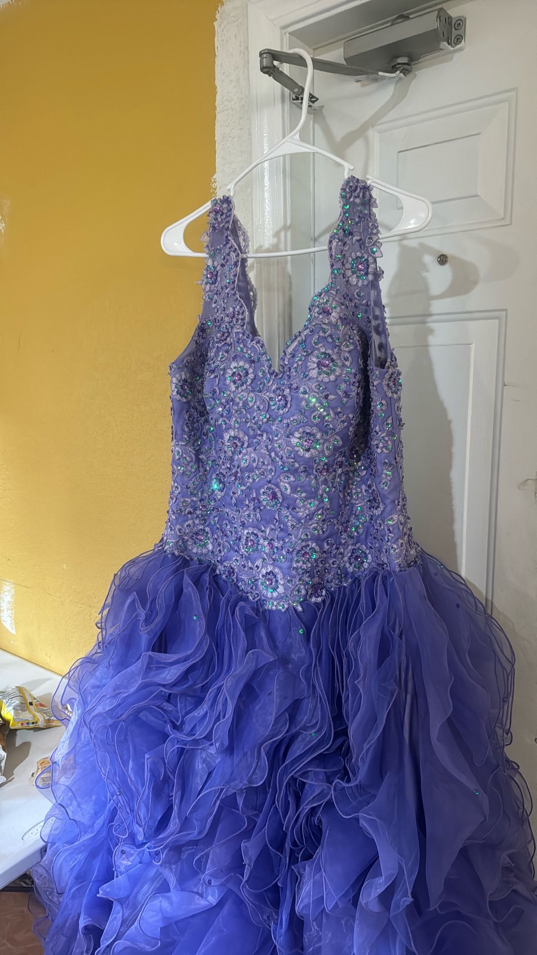 Color morado muy bonito size XL es ajustable de atrás , excelente condición