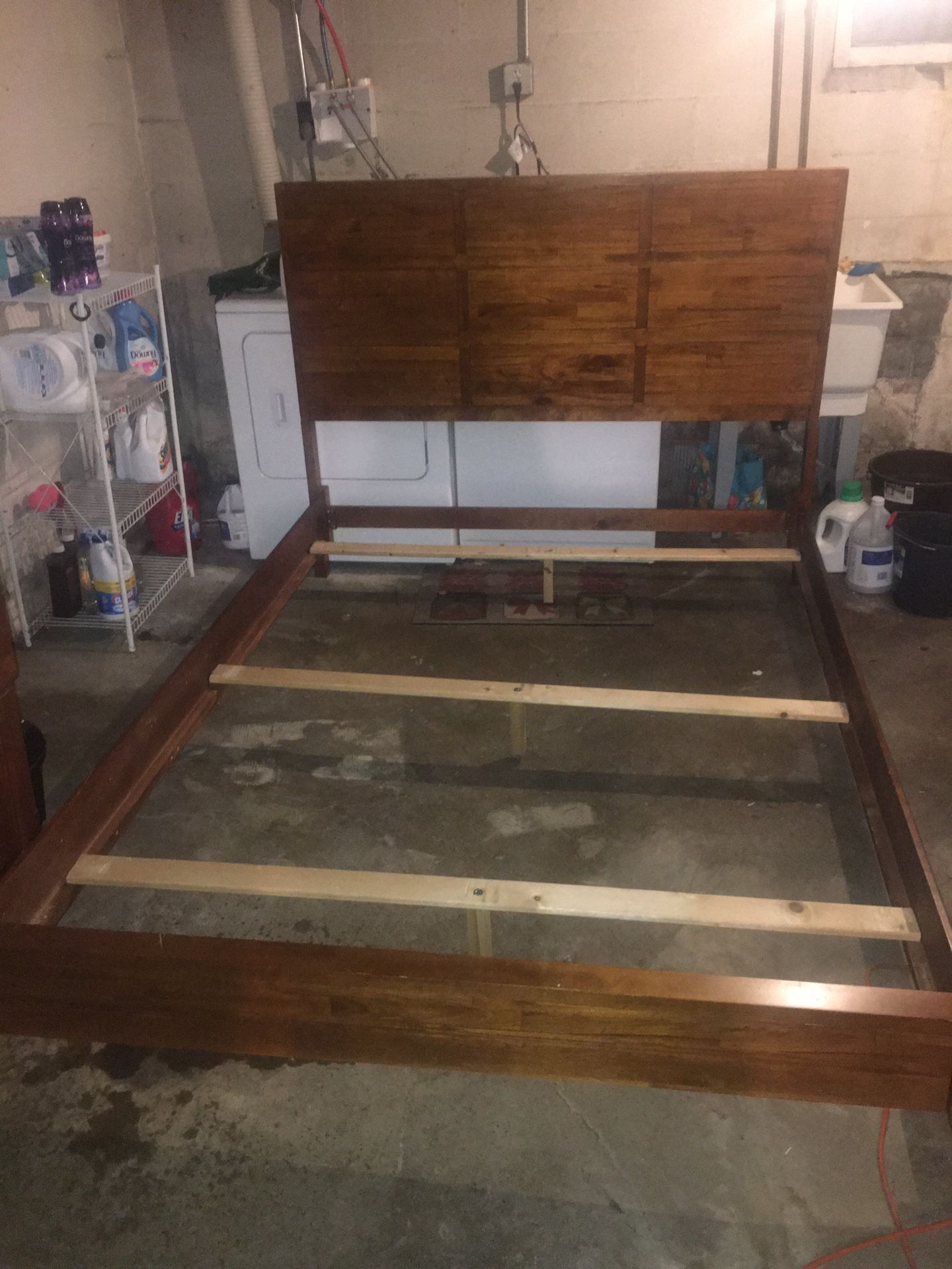 Wonderfully sturdy and beautiful wooden bed frame. Super easy set up with all parts included. Pick up only. $100 obo