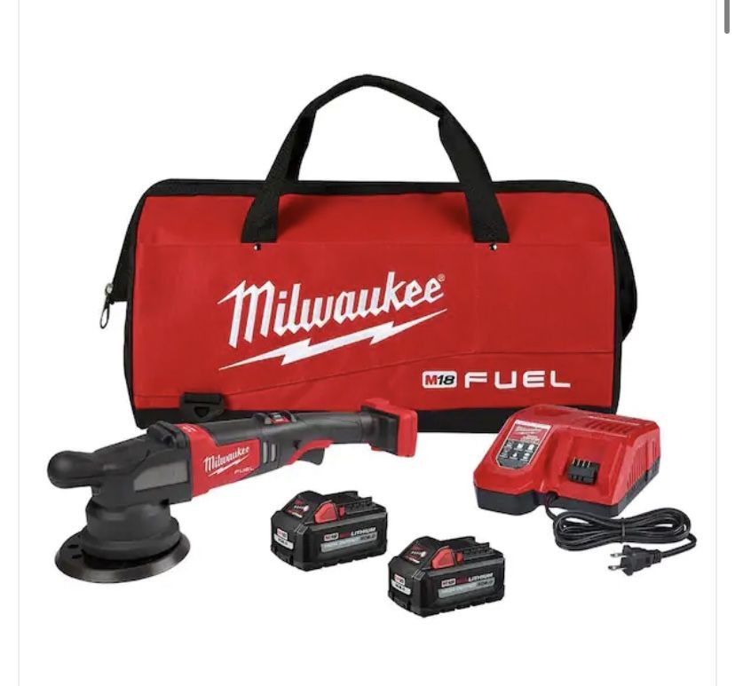 Brand new in box!! Goes for $560-$650 online ————————- Our M18™ FUEL™ 21mm Random Orbital Polisher Kit is the industry's first cordless 21mm RO polisher. By harnessing the power, performance, and run-time of M18™ FUEL™ technology, this polishing tool delivers corded performance while providing you with the freedom to work anywhere. This battery-powered polisher gives you total control with its variable speed trigger, 8-position speed dial with RPM settings ranging from 2,400-4,500 RPM, trigger lock-on button, and maintains speed under load. The M18™ FUEL™ 21mm Random Orbital Polisher frees you from cord management and the fear of surface damage with best-in-class clearance of more than 2" from the battery to the work surface. The MILWAUKEE® M18™ FUEL™ 21mm Random Orbital Polisher provides the run-time necessary to keep professionals productive during polishing and heavy correction applications when paired with M18™ REDLITHIUM™ HIGH OUTPUT™ XC 6.0Ah batteries. This cordless polishing tool is easy to use and comfortable for extended periods with an optimized center of balance and ergonomic design.