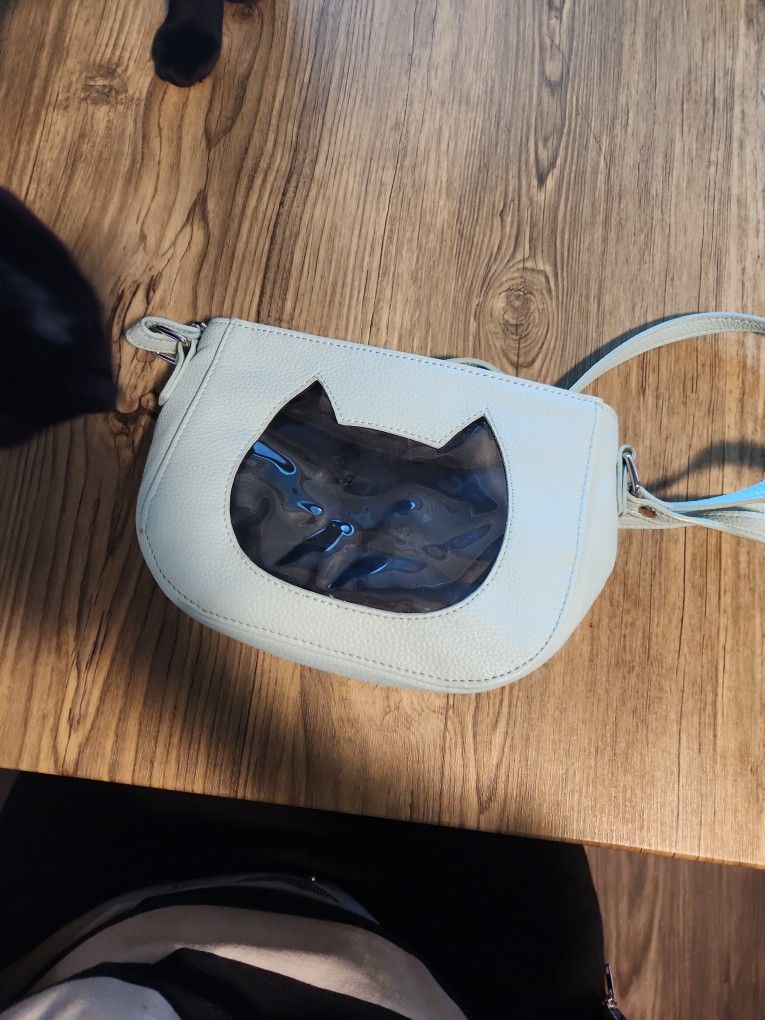 A small purse meant to show off pins in the window. Bought a few years ago and only used a few times. Small holes are in the pin sheet behind the window as I placed around three pins inside but barely used the purse. Pins have been removed.