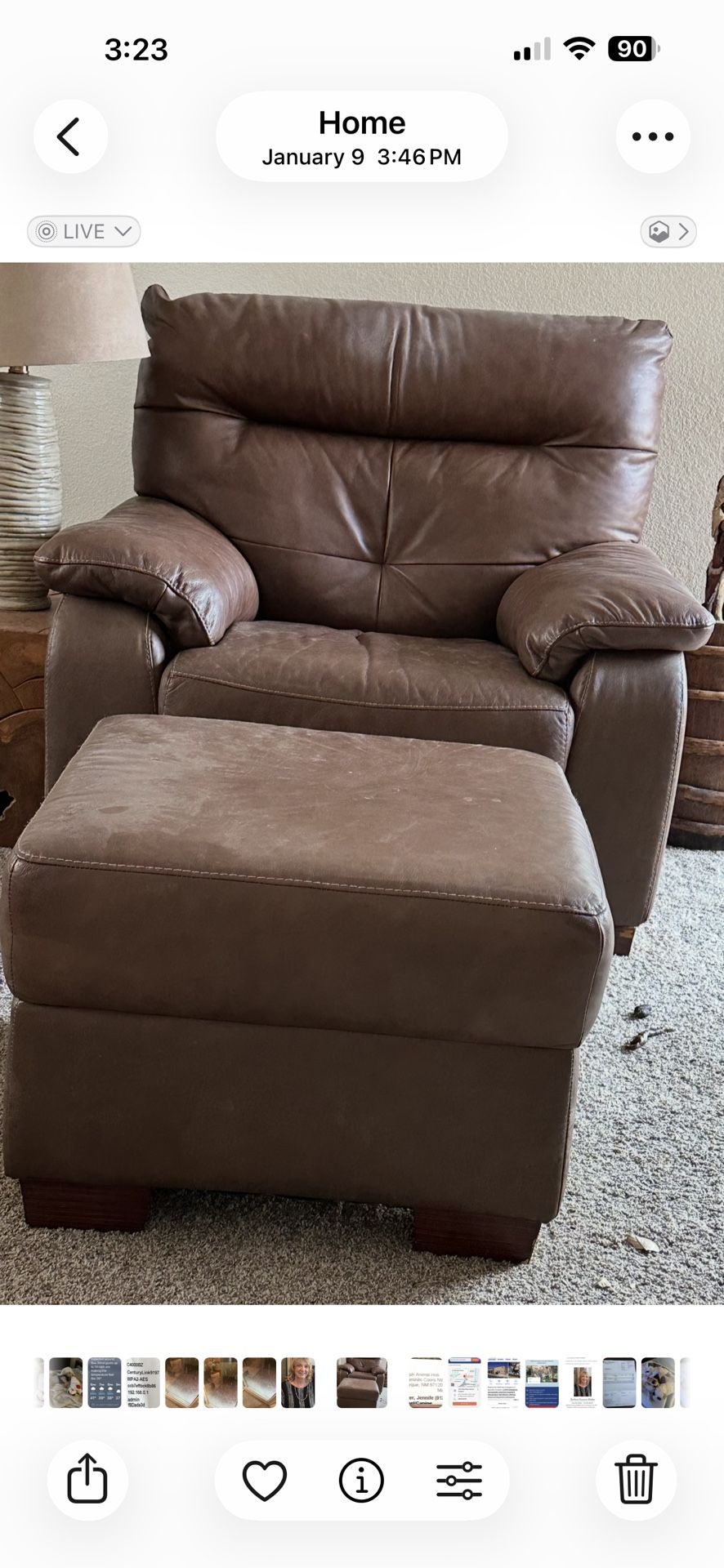 New condition, leather good quality chair! No rips or tears leather is soft and very comfortable Only used in guest bedroom.