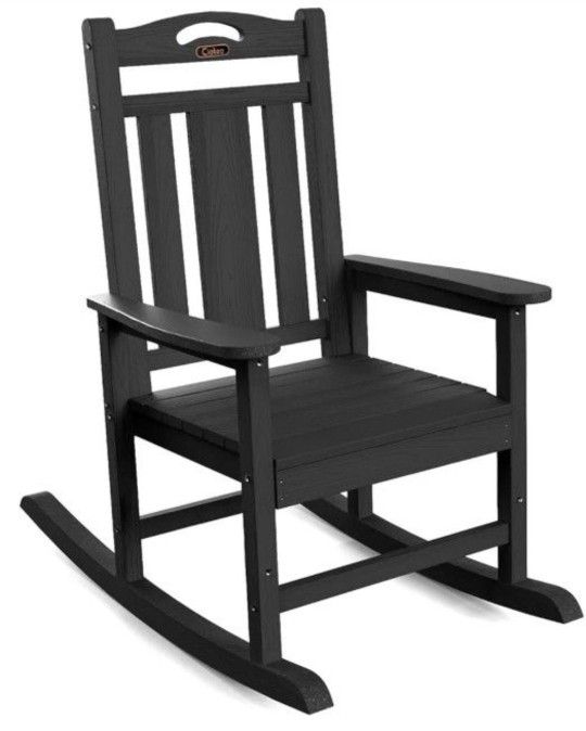 Oversized Rocking Chair Outdoor, HDPE Poly Rocking Chair, All Weather Porch Rocker for Deck Patio Balcony, 380lbs, Black Retailer Link: https://offerup.com/redirect/?o=aHR0cHM6Ly93d3cuYW1hem9uLmNvbS9kcC9CMERCMjNaTjFO Retail Price: $139.99 Retail Price: $139.99 Condition: New Open Box Condition Notes: Damage: No Functional: Yes Missing Parts/Pieces: No